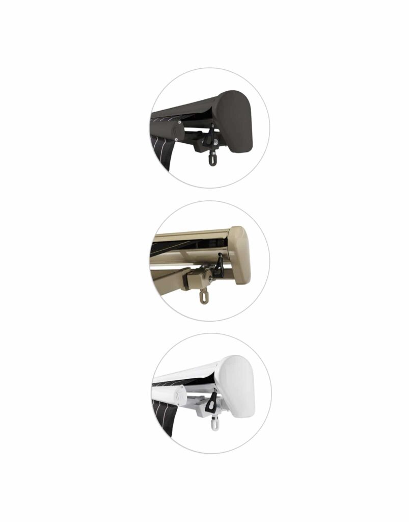 When retracted, the integrated cassette housing, often referred to as a “garage,” keeps the fabric safe from the elements. Customers can enjoy awnings that resist fading, insect and bird damage, and other types of wear. In contrast, many competitors offer hood housing as an optional upgrade, which does not provide the same level of protection from insects, birds, and general fabric wear.